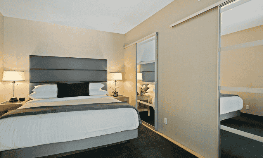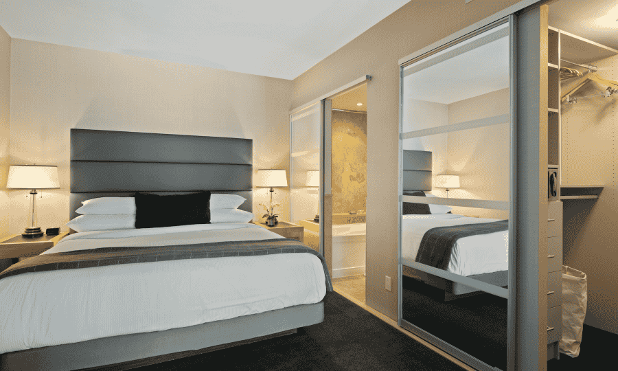 The room is designed with business professionals in mind, offering features like blackout curtains for privacy, noise-canceling capabilities to block out distractions, and a soundproofed environment that allows for quiet reflection or confidential phone calls. A well-stocked minibar provides refreshments to keep you energized throughout the day, while a dedicated wardrobe space keeps your business attire neat and organized.