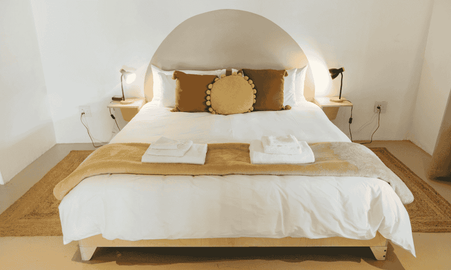 The en-suite bathroom features a walk-in shower, luxurious toiletries, and plush towels, offering a refreshing experience that leaves you feeling revitalized.